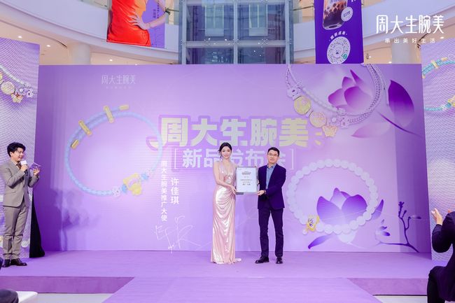 图:许佳琪在周大生门店试戴周大生腕美串珠 周大生珠宝股份有限公司董事、营运本部副总经理夏洪川先生在发布会上表示,“周大生品牌一直致力于为万千消费者提供质优价实的好产品,为顾客奉献美丽传递爱心,我们也一直致力于品牌年轻化、时尚化,致力于产品场景化和更富有文化情感价值。周大生腕美是我们黄金珠宝首饰串珠品类的全新升级,定位于18-35岁新青年群体,主张用丰富多彩的串珠扮美自己,串起美好生活。”