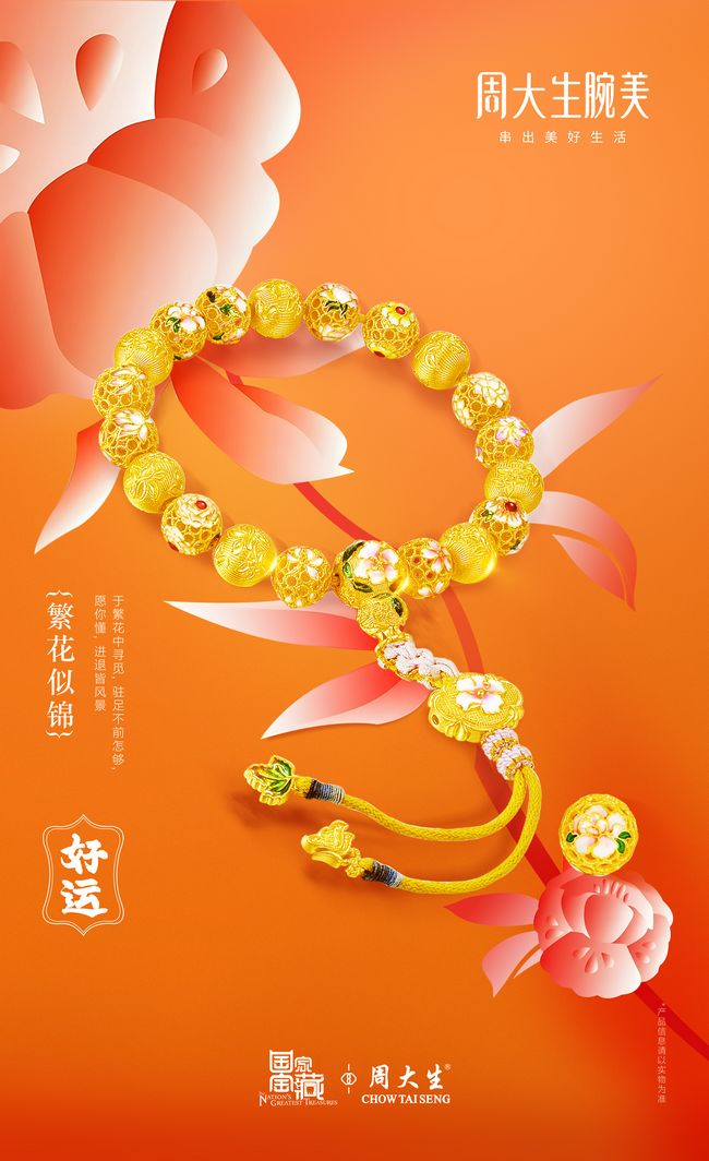 国风国潮风格,以国家宝藏、非凡国潮、福禄寿喜财等主题为核心,主打好运。每款产品都有美好寓意,能给佩戴者带来好运。 夏洪川还在现场表示“周大生腕美好款多,爆款多,组合多样,让每一位佩戴者都能通过周大生腕美,展现出自己的个性与魅力。每一颗金珠玉珠都代表着自己和爱人的情谊,闪耀在生活和工作中的每一刻。”