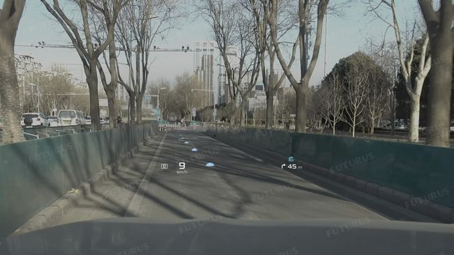 技术亮点与优势 1. 增强 AR 空间感与实景融合:共轴光场方案实现了 AR 层更远的虚像距离,带来更强的 AR 空间感,与实景融合效果更加自然,显著提升用户的驾驶体验。确保在动态驾驶场景中,信息与现实环境的完美契合。 2. 近层 WHUD 弥补实际场景不足:WHUD 的引入为特定场景提供了解决方案,例如在堵车或低速场景中,AR 画面可能因距离较远而钻入汽车难以读取时,WHUD 可在近层显示关键信息,确保驾驶信息的完整性和易读 3. “可近可远”分层显示,优化 HMI 设计:分层显示设计解决了单一界面信息过载的问题,使整体 HMI(人机交互界面)设计更加简洁高效。通过按需显示逻辑,不需要将所有信息堆叠在同一画面,避免用户视线被干扰。合理的交互设计引导还能自然延展用户的视线焦点至远层信息,减少驾驶疲劳,提高安全性。 4. 创新光路设计,确保稳定显示:通过核心光路的创新设计,确保画面显示的高度稳定性,避免眩晕问题,进一步优化用户体验。 软件、算法和引擎 AR Kernel® 空间计算引擎 FUTURUS 专为 ARHUD 开发的“AR Kernel® 空间计算引擎”,通过融合整车传感器数据(如车速、GPS、智能驾驶传感器等),实现高帧率实时 3D 渲染与延时补偿。该引擎精准计算虚拟信息与现实环境的叠加位置,确保虚拟内容与现实场景无缝融合,为用户带来高度真实的 AR 视觉体验。 而依托于蔚来 ET9 的 Aquila2.0 天鹰座超感系统,AR Kernel® 可实时渲染呈现的感知数据品质会获得大幅提升,将更为精准和细致,且不受大雪等极端天气影响。 而 SkyOS·天枢系统,其高带宽、低时延、大算力等特性,在底层打通智驾硬件、计算平台、通信与能源系统,实现对车控、智能驾驶、数字座舱等全域应用的统一管理与协调,进一步拓展了 AR Kernel® 未来可能性,可以在 AI 时代构建真正的整车智能化 ARHUD 系统。 核心优势: