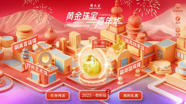 据悉,周大生黄金珠宝嘉年华将于2025年1月18日至2月16日盛大举行。活动期间,前往周大生全国线下门店消费满2025元,即可参与国家宝藏金条、黄金金贴等十万份黄金好礼大抽奖,满载“金”喜而归,让蛇年春节更添温馨氛围。 值得注意的是,周大生不仅会举行线下抽奖,线上抽奖活动也会同步展开,参与相关活动也将有机会获得黄金礼品。活动期间进入“周大生美搭宝盒”微信小程序,点击黄金珠宝嘉年华活动专区,即可看见时尚艺术、国潮国风、腕美吉运、婚恋囍事四大主题场馆,选择场馆参与互动游戏即可获得抽奖机会。抽奖奖品除了国家宝藏金条、黄金金贴外,还增设了蛇年生肖串珠、暴富金钞、黄金挂件等多重好礼。无论是线下门店还是线上活动专区,周大生都致力于为消费者打造充满欢乐的黄金珠宝嘉年华,让每一位参与者都能收获满满的幸福和喜悦。
