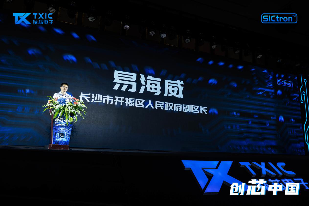 发布会上,长沙市开福区人民政府副区长易海威致欢迎辞,他对湖南钛芯电子科技有限公司碳化硅芯片及其应用项目落户开福区表示热烈欢迎。他表示,本次产品发布会是开福区深入实施省委“三高四新”战略的积极响应与贯彻。湖南钛芯电子科技有限公司作为长沙消费类电子产业集聚区重点引进的高端制造企业,科技研发实力雄厚,产品市场前景良好,完全符合开福消费类电子产业发展方向。本次钛芯碳化硅应用产品发布会,必将为开福智能制造产业高质量发展注入新的动力,开福区政府将全力为钛芯电子落地开福提供全方位的优质服务,持续为企业发展助力。